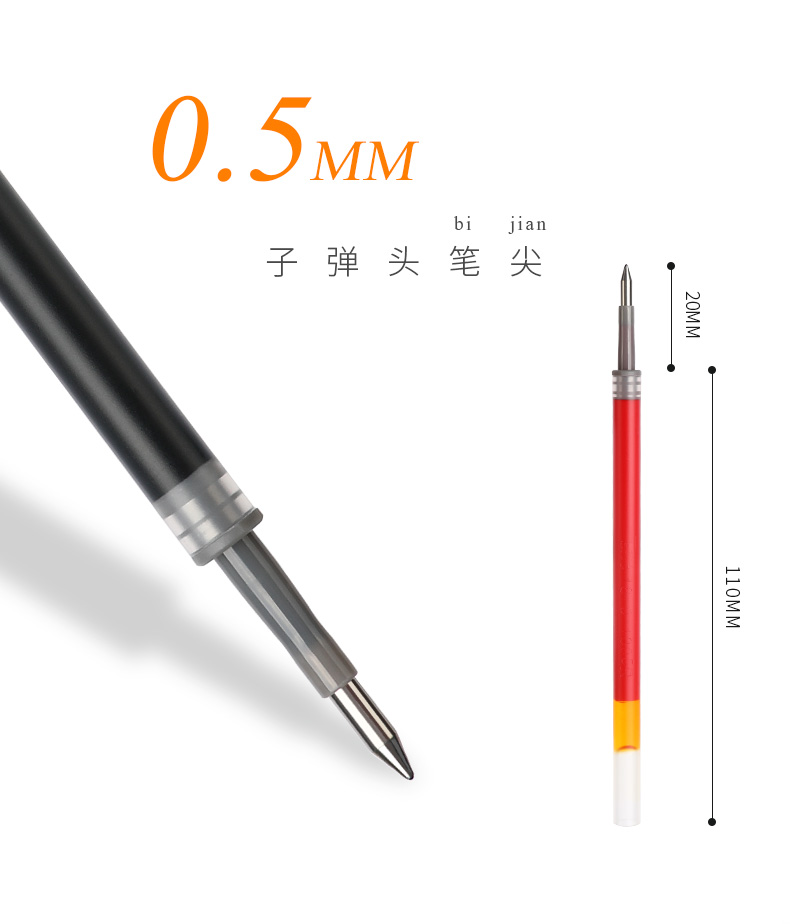 晨光按动中性笔芯0.5mm按动水笔比替芯红墨蓝黑签字大容量子头弹G-5芯k35替换适配1008心学生作业g5按压摁动